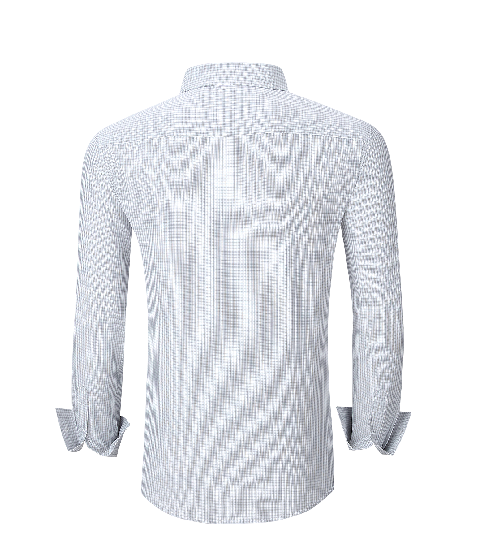 Your go-to dress shirt—clean, crisp, and easy to wear. The PVLS216 modern-fit button-down features a subtle mini-check texture that reads polished up close and classic from a distance. Finished with a chest pocket and a streamlined silhouette, it’s perfect for work, events, and everyday sharp style.
