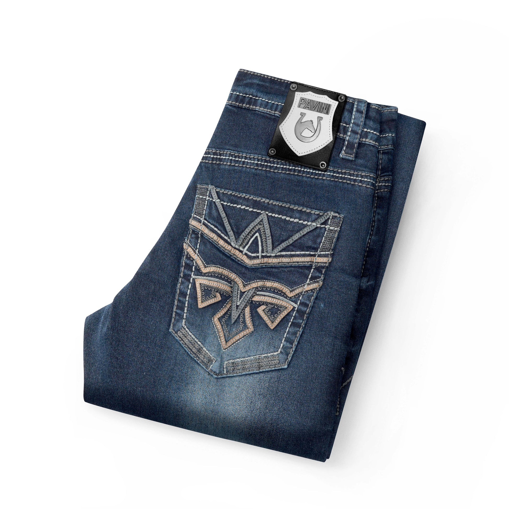 COMBO PATCHWORK ON BACK POCKETS.