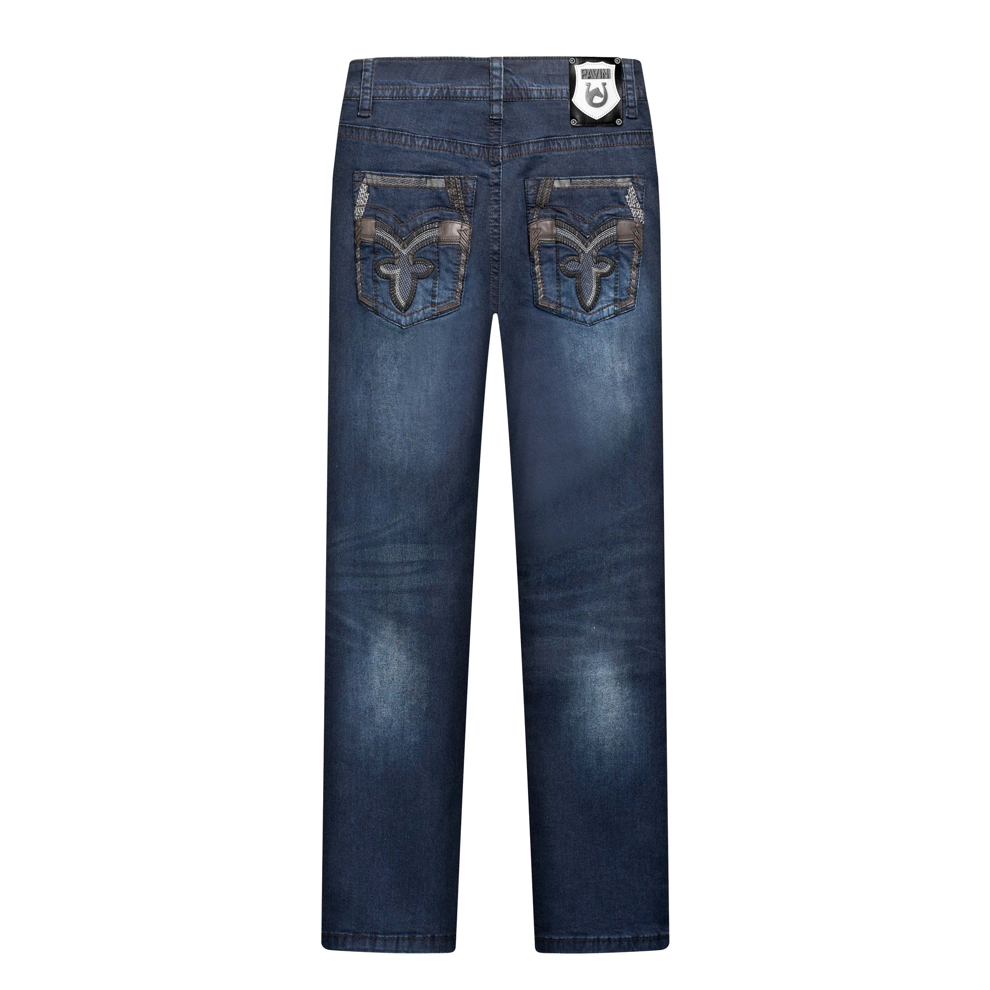 COMBO PATCHWORK ON BACK POCKETS.