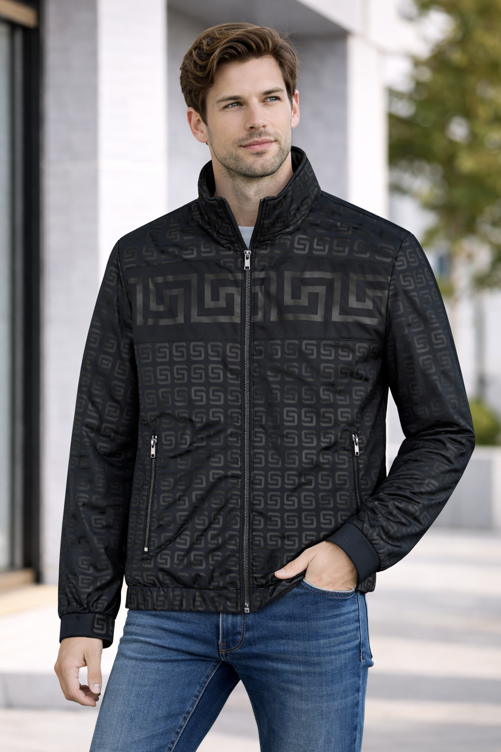 Men’s Patterned Track Jacket – Full Zip, Stand Collar, Zip Pockets | Style JK-2463