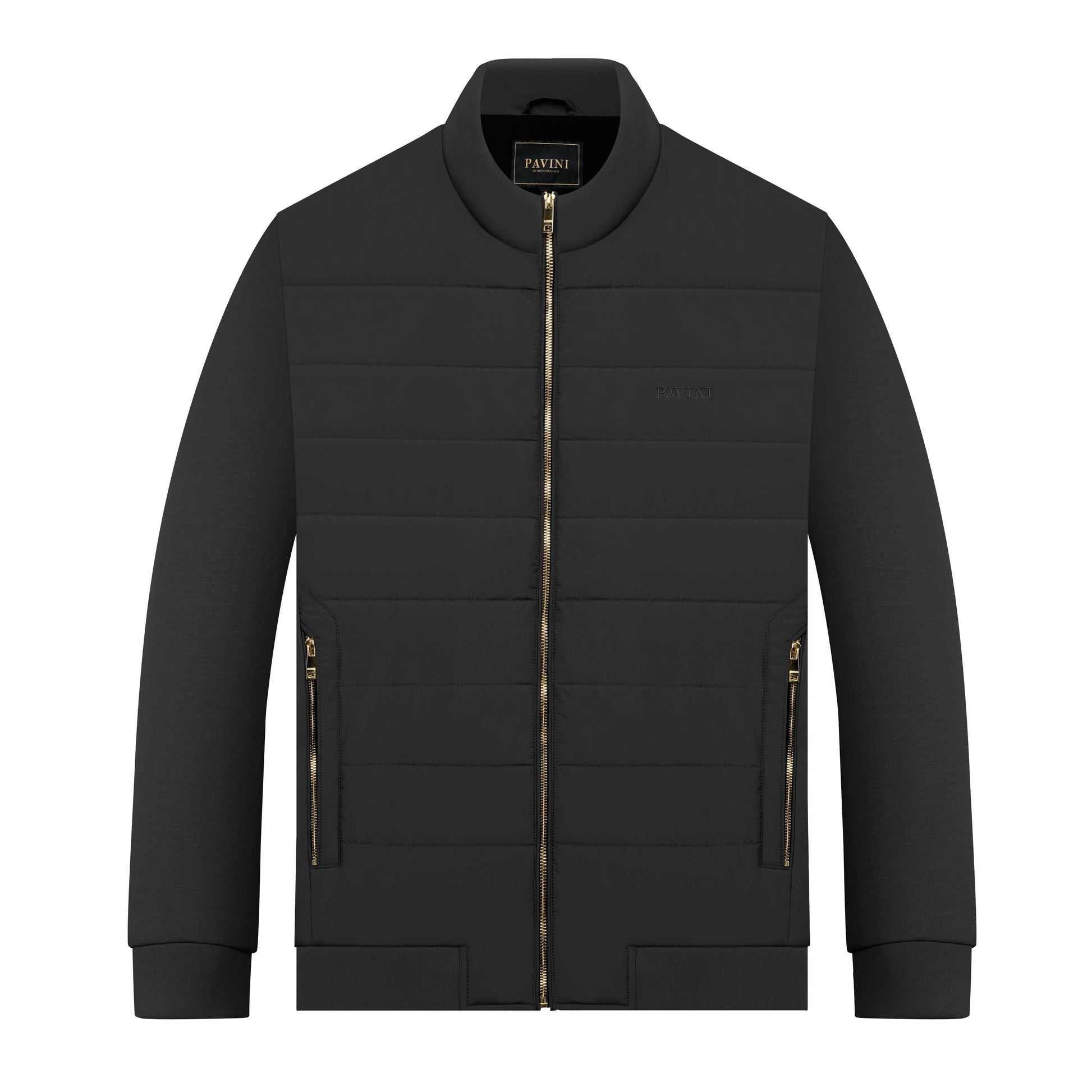 Men’s Puffer Front Bomber Jacket – Full Zip, Stand Collar, Zip Pockets | Style JK-165