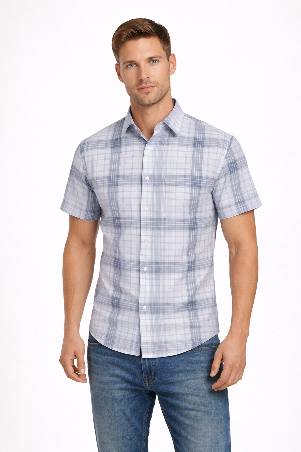PVSS239 Men’s Modern Fit Short Sleeve Printed Plaid Shirt