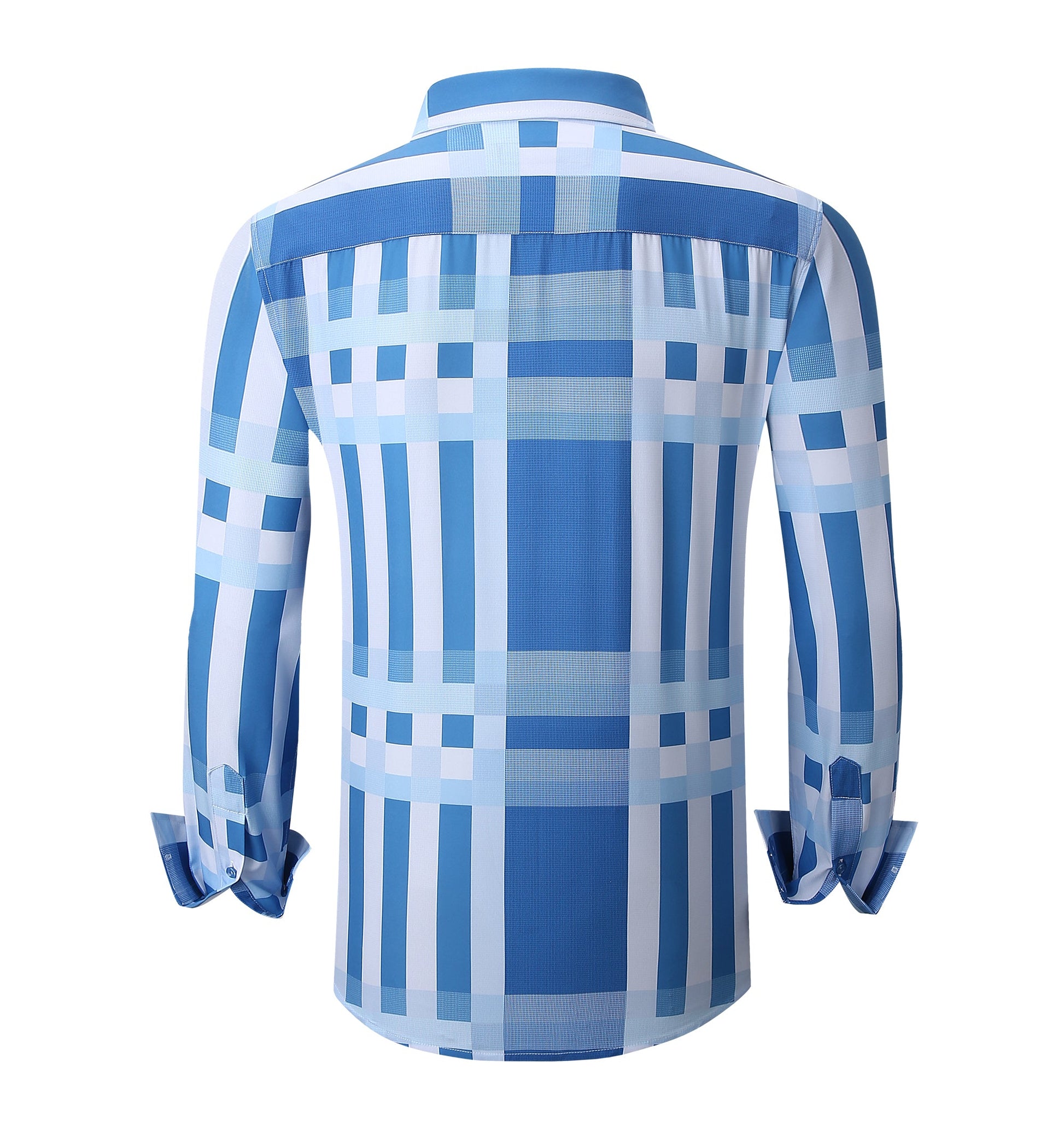 Fresh color, sharp pattern, and an easy-to-wear fit—this fashion plaid shirt brings a clean statement to your everyday lineup. Designed with a crisp point collar and button-front styling, the bold blue-and-white check makes it perfect for smart-casual days, weekends, and nights out.