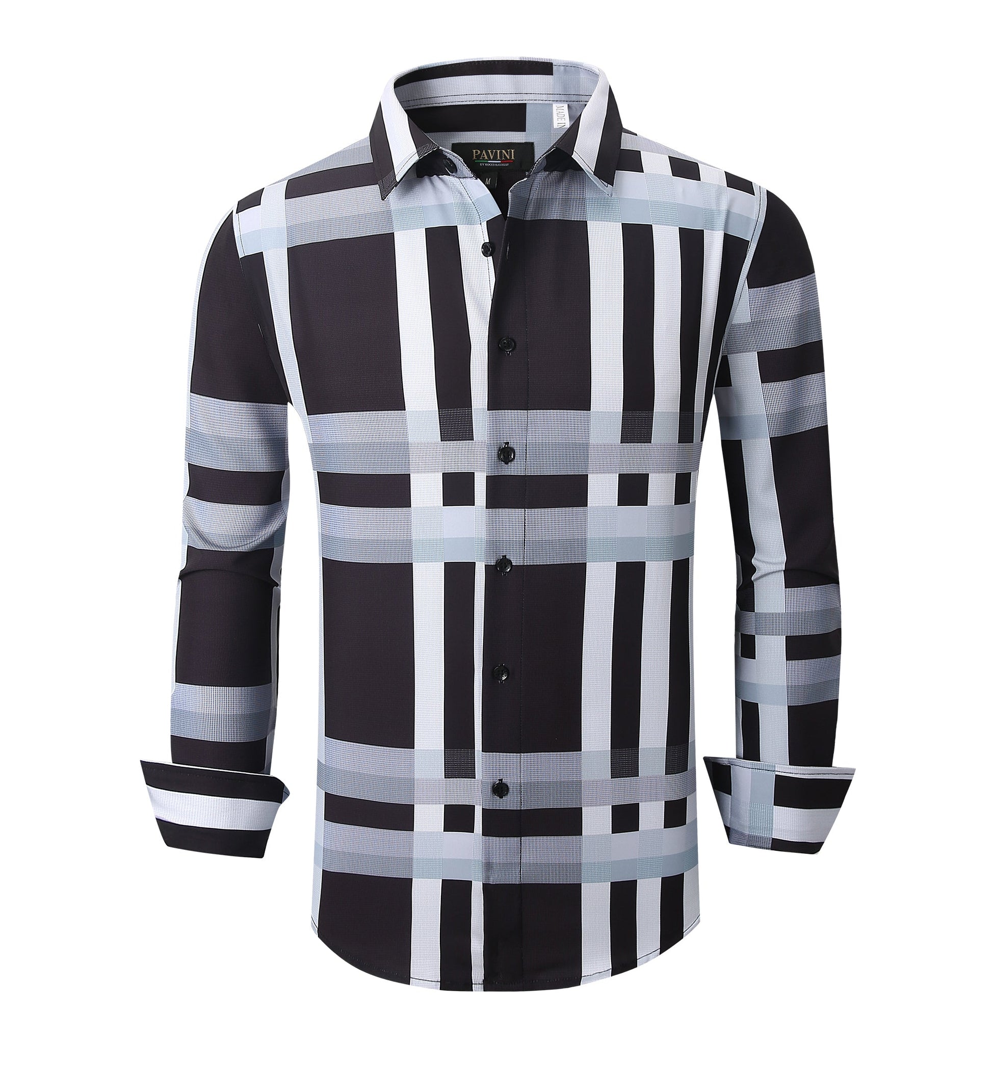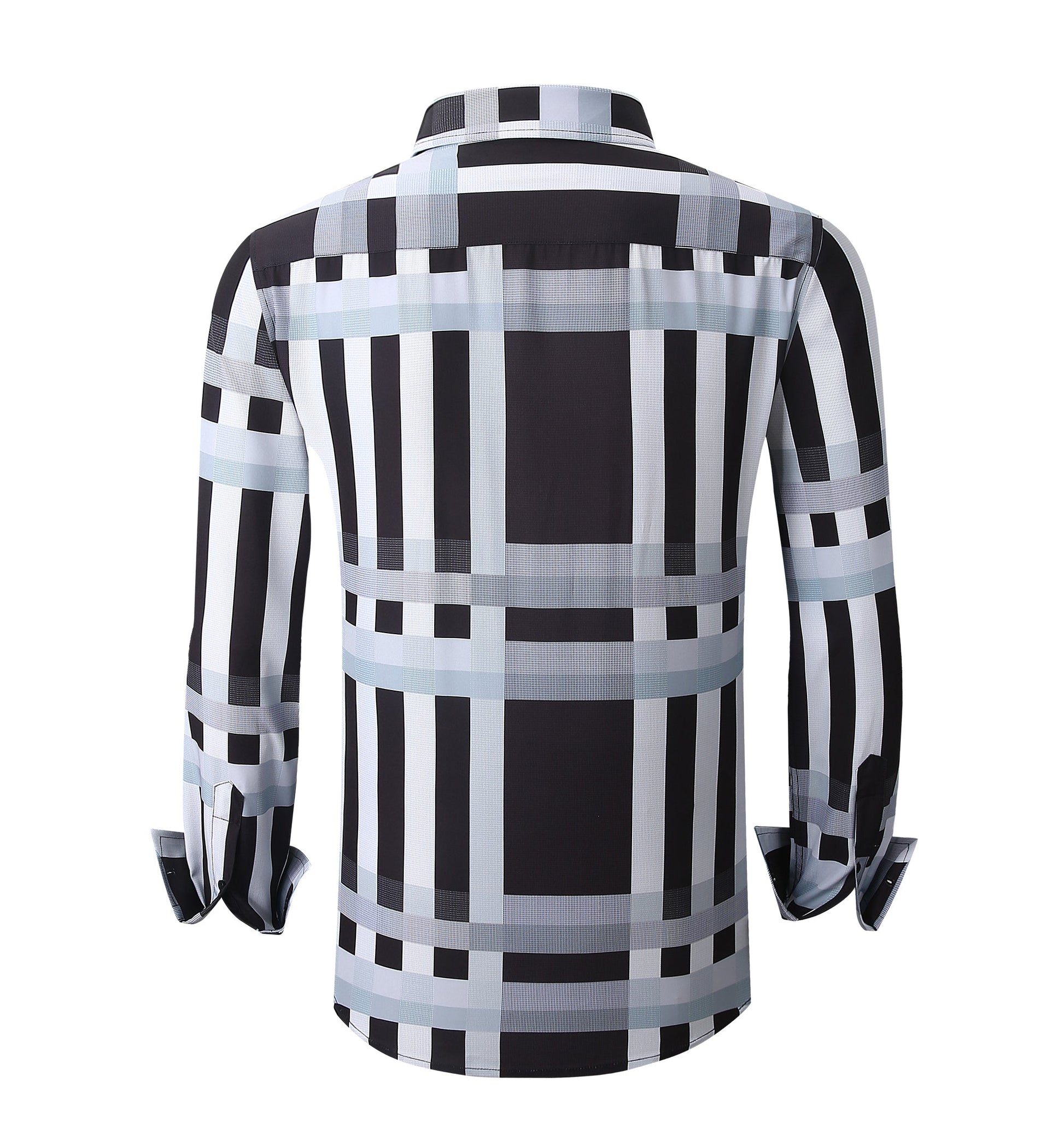 Men’s Fashion Plaid Shirt – PVLS186-01 (Black/Grey/White Check)