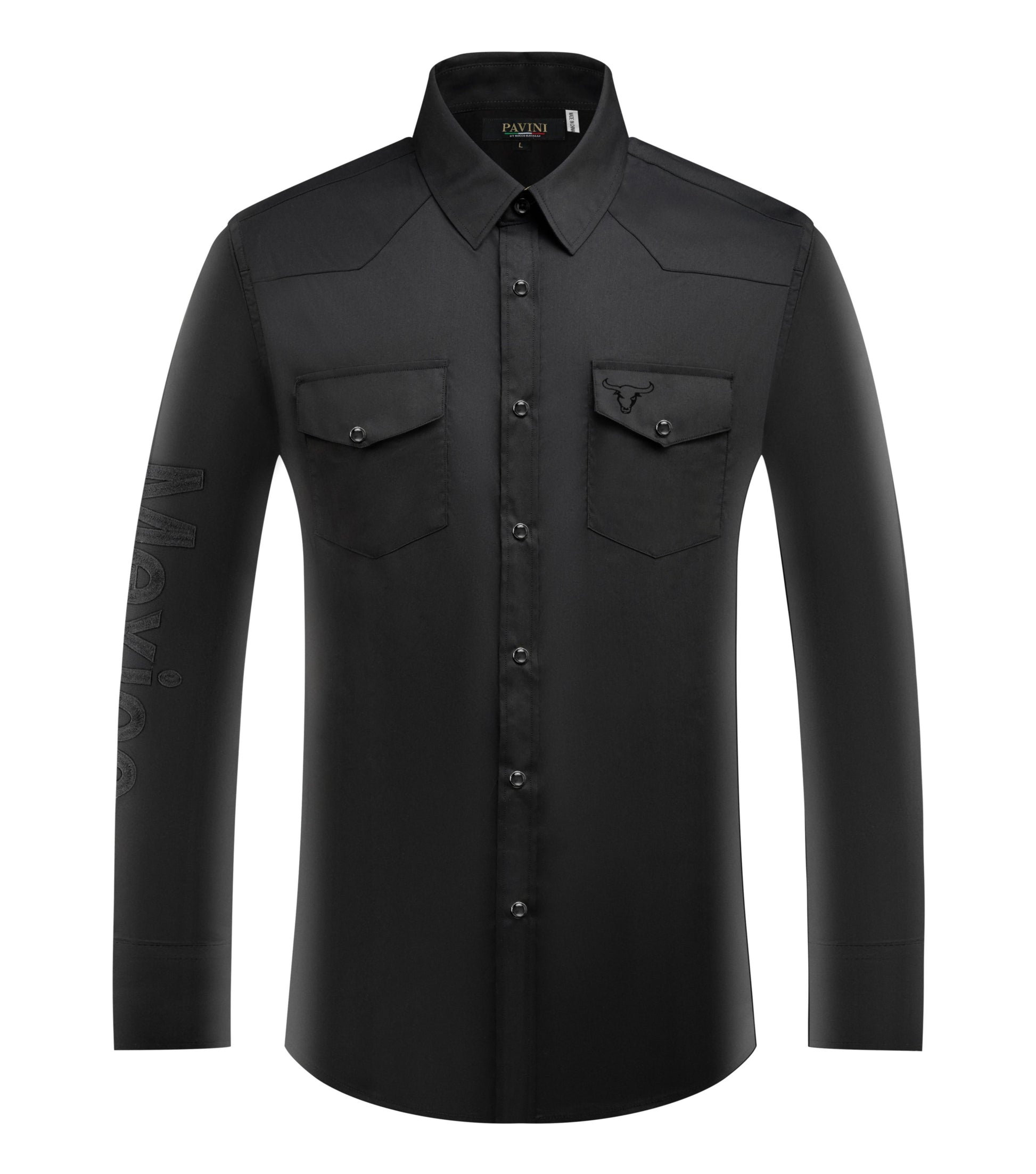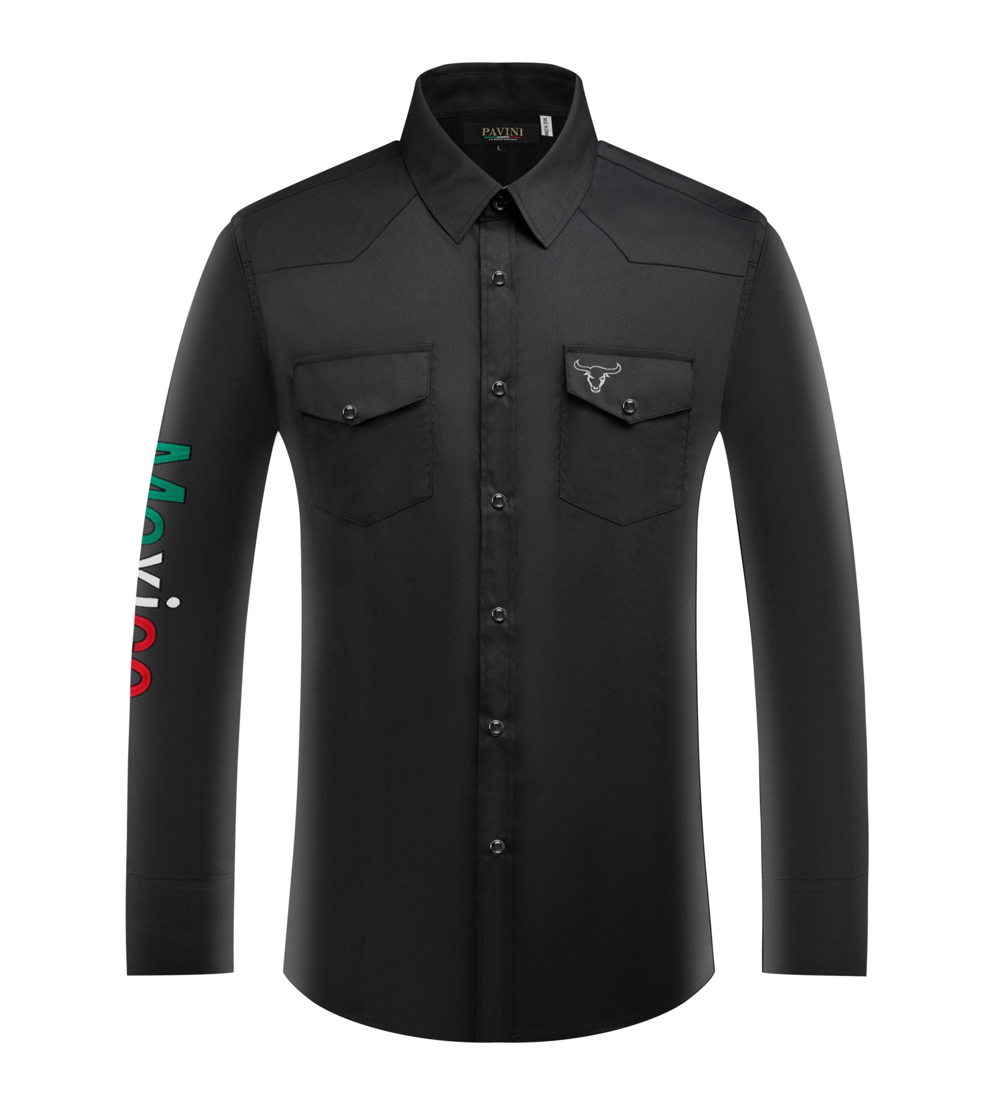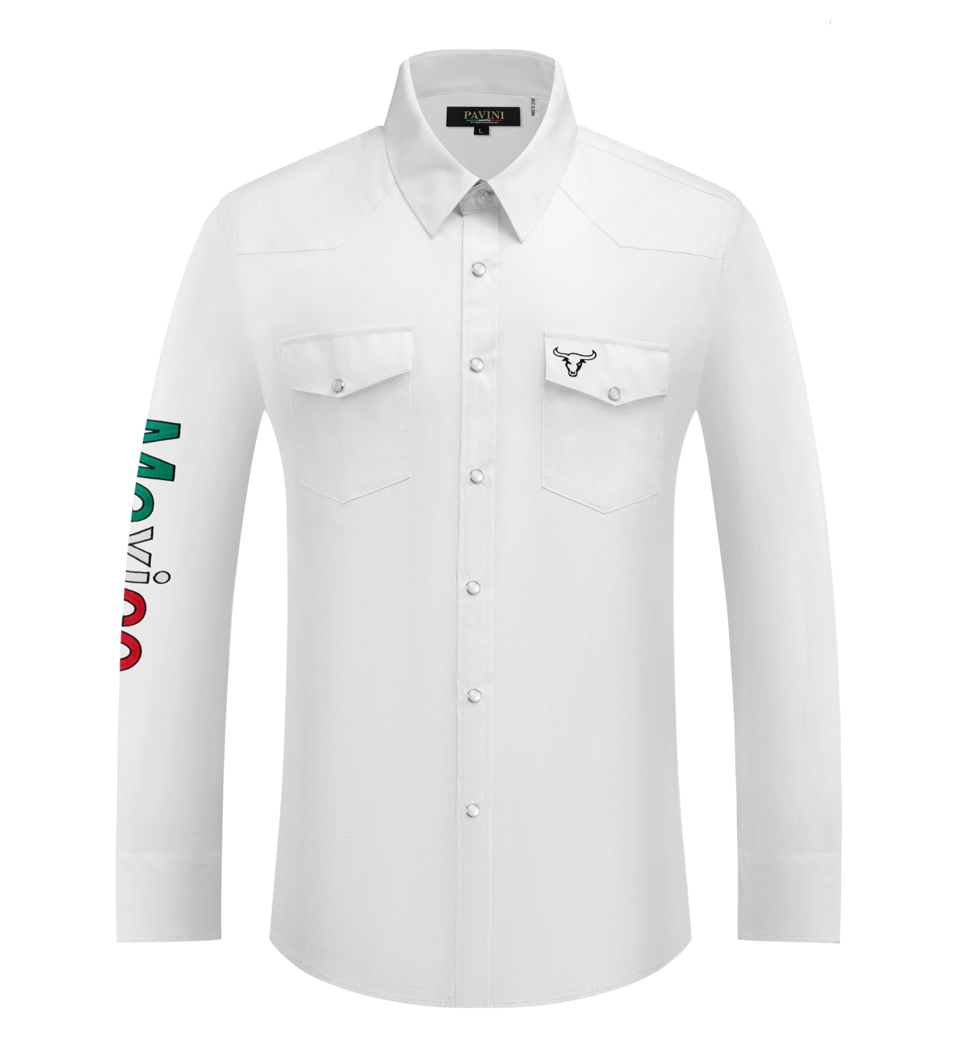 PAVINI Men’s Mexico Western Snap Shirt – Long Sleeve, Embroidered Sleeve & Flag Patch