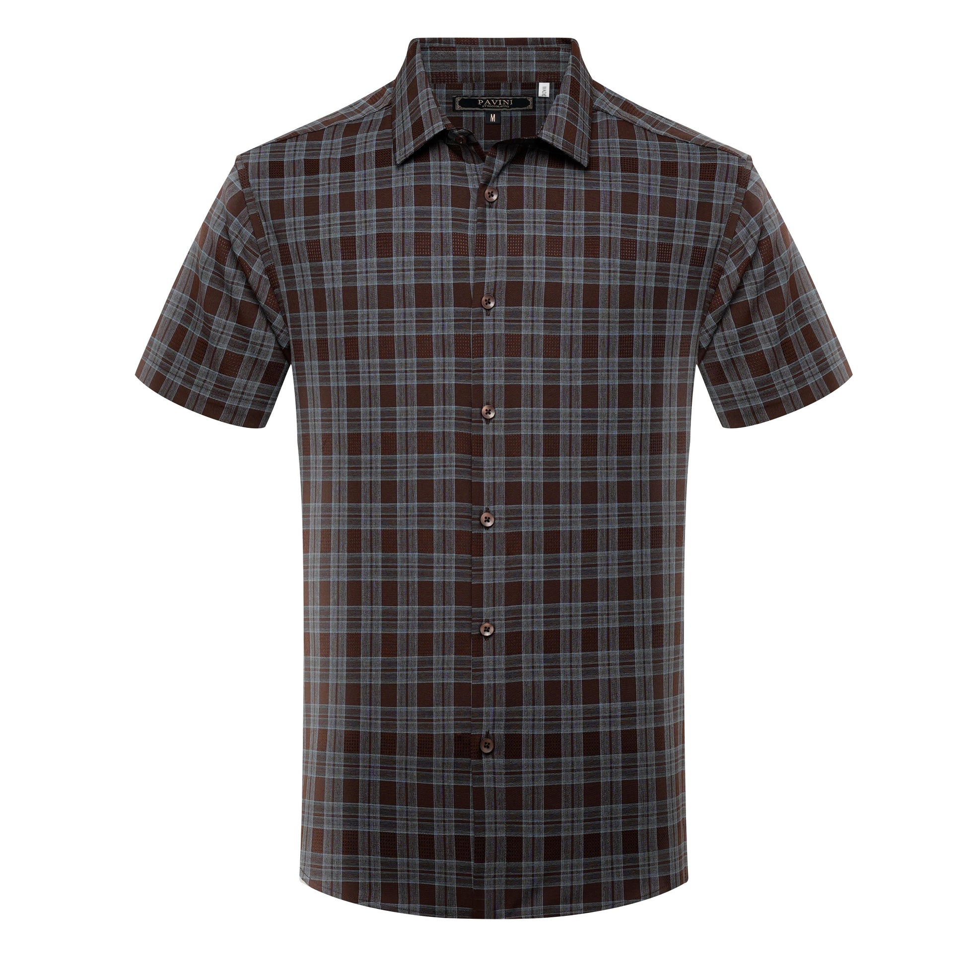 PAVINI Men’s Short Sleeve Button-Down Shirt – Plaid (Style SH-1304)