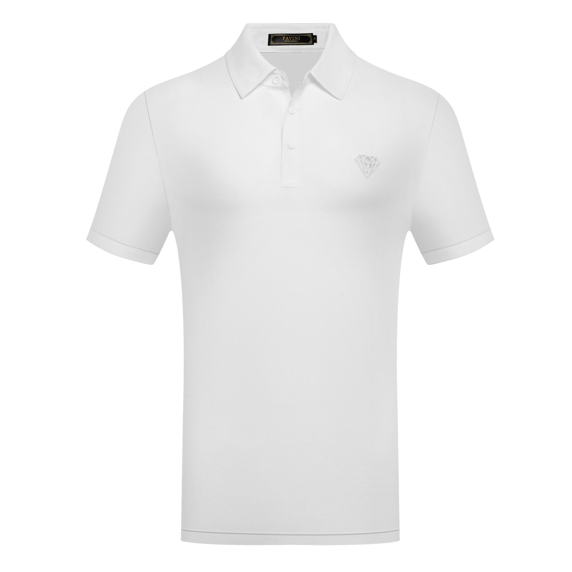 Clean, sharp, and effortlessly elevated — the PAVINI P-3229 Diamond Emblem Polo is made for a polished look any day of the week. This premium men’s polo features a crisp solid design with a standout diamond chest emblem finished with detailed stitching and subtle shine for a luxury touch.